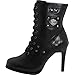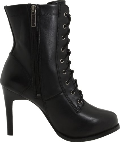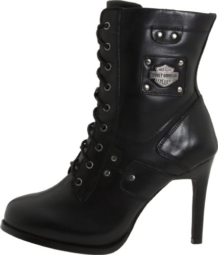 Harley Davidson Boots are for fashionable lady riders The Vikki boot functions a black complete grain leather foot below a six\" lace-up leather shaft. 3 3/4\" spike heel. Hefty-duty, locking YKK within zipper. Round toe. Imported.