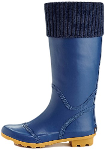 Henry Ferrera Women's Foldover Knit Waterproof Rain Boots (7 B(M) US, Navy)