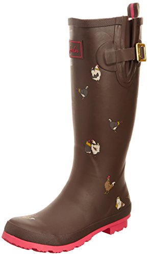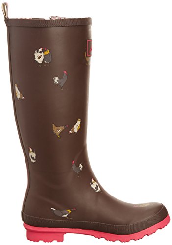 Joules Welly Print Dark Brown Chicken Women's Rain Boots (7 B(M) US)