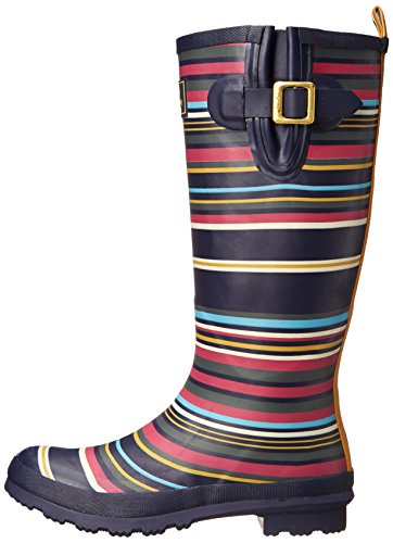Joules Women's Welly Print Rain Boot, Navy Multi Stripe, 8 M US