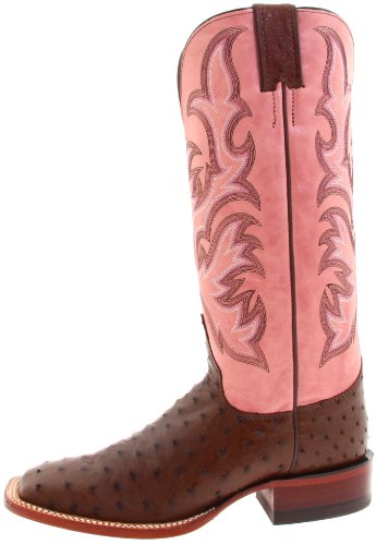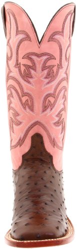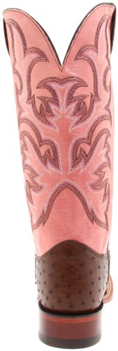 Justin Boots Women's Aqha Lifestyle Collection 13" Remuda Series Boot Wide Square Double Stitch Toe Leather Outsole,Antique Brown Full Quill Ostrich/Pink Crunch Goat,5.5 C US