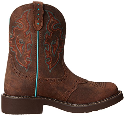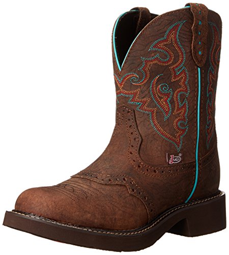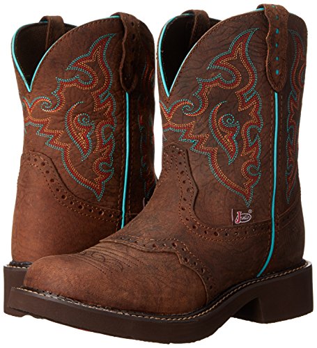 The sassy and versatile Justin Gypsy Cowgirl boot is wardrobe bliss This rider-pleasant boot attributes distressed brown leather foot underneath a fancy stitched eight\" leather shaft. Teak leather pipingfort material mesh lining. Patent pending \"Gypsy\" riding boot rubber outsole. Sturdy unit heel. Single stitched welt. Round toe profile. Shaft circumference is 13\" (primarily based on a dimension 6B).