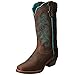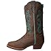 Introducing the Justin Silver cowboy boot assortment, inspired by placing today\'s cowboys and cowgirls in comfy boots This women\'s Justin Silver boot attributes a smooth, chocolate leather foot beneath a twelve\" leather shaft with vibrant turquoise embroidery. Turquoise leather piping accents shaft and collar. Cowgirl heel. Turquoise leather lining. Scalloped collar. Moisture-wicking footbed. Single stitched welt. Easy-on pull straps and up to date square toe. Imported.