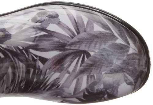 - Rain boot in fern and floral print with pull tab on back leg opening