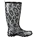 - Waterproof rainboot in animal print featuring contrast trim and rear pull-tab
