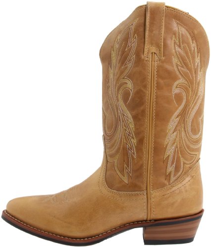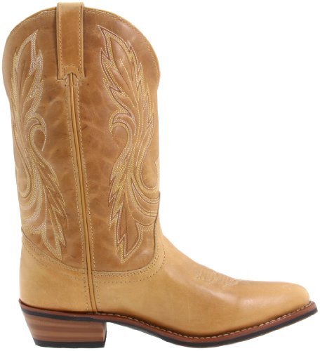 Laredo boosts the appeal of this cowgirl boot with good quality leather construction This women\'s boot characteristics a smooth, tan leather foot below a fancy stitched 12\" leather shaftfort material mesh lining and taped side seams. Single stitched welt. Round toe profile and simple-on pull straps. Rubber grip surfaced heel. Imported.