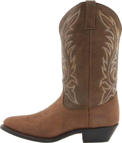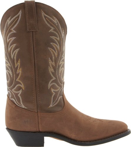Laredo Boot Organization gives very good-seeking and comfy western cowboy boots at a good price. This Women\'s Laredo Boot boasts a distressed leather foot topped by an 11\" synthetic leather shaft with fancy stitch pattern. Brown piping accents. Medium toe profile and 1 one/two\" cowboy heel. Shaft circumference is 14\" (based on a size 7M).