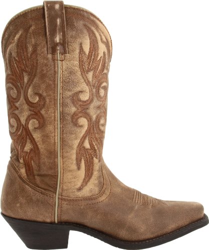 Laredo mixes contemporary detail onto classic cowgirl boots. This women\'s Laredo boot functions a heavily distressed leather foot under a matching and fancy stitched 11\" shaft. Straightforward-on pull straps and updated square toe profile. Imported.
