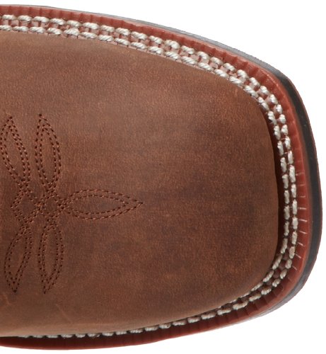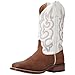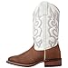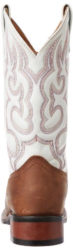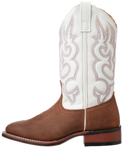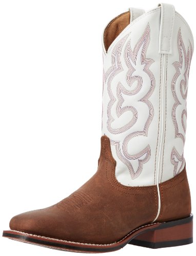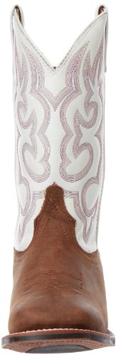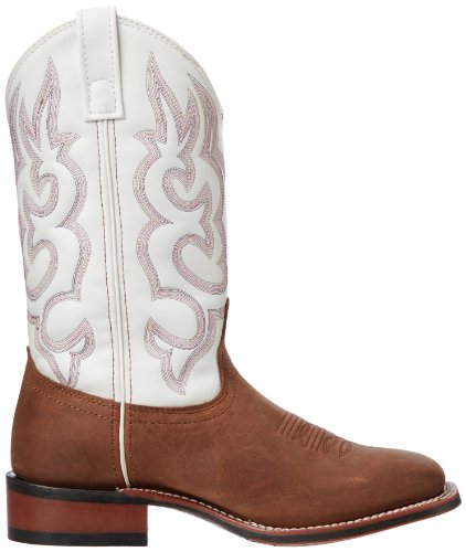 Laredo helps make fashionable, inexpensive boots for today\'s gals This women\'s boot functions a distressed, brown leather foot below a fancy stitched 11\" white, manmade leather shaftfort fabric mesh lining and taped side seams. Double stitched welt. Square toe profile and simple-on pull straps. Rubber grip surfaced heel. Imported.