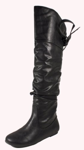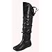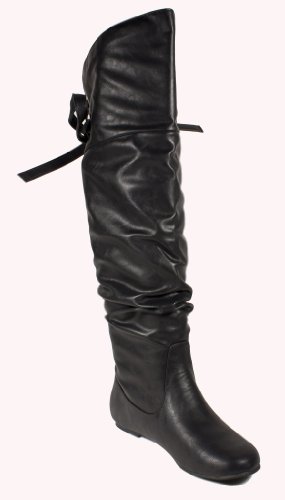 Letta! By Soda Sexy Fashion Pirate Inspired Slouchy Thigh-high Flat Boots with Lace-tie Back Design, black leatherette, 5.5 M