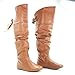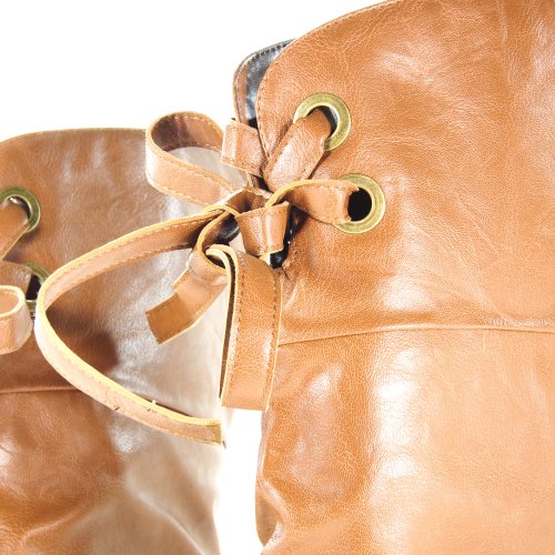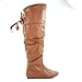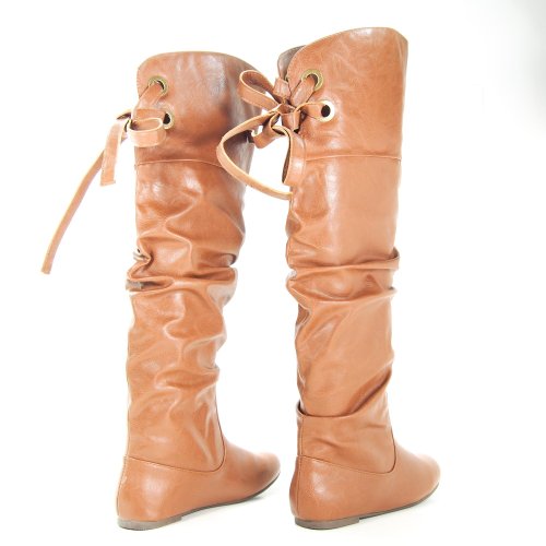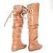 Letta Tan PU Knee High Leather Boots Fashion Laced Lace Tie Criss Cross Bow-8