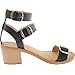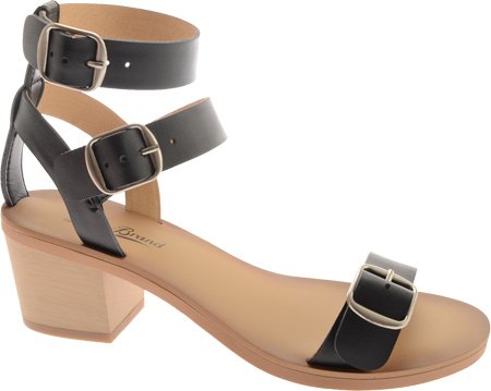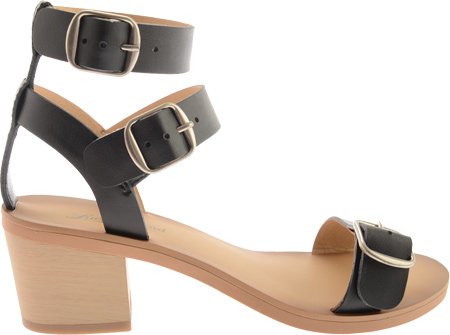 Iness is a glamorous strappy sandal on a faux wood heel. The double ankle strap adds extra flair.