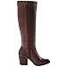 - Knee-high boot featuring full-length elasticized gore on outer side and stacked block heel