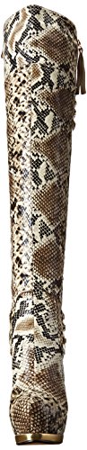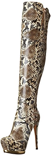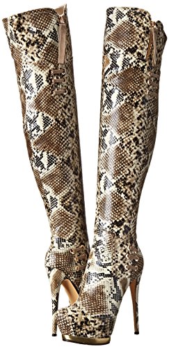 Deliver out your wild side in Luichiny\'s above the knee boot May LA. This fierce boot is a single of a type. It functions Imi Snake skin all more than, 6 embellished studs with leather accent, an accented zipper on the upper, and a side zipper for accessibility.