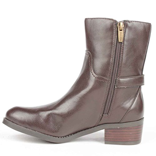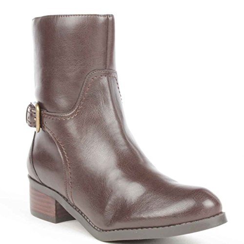 Ankle boots from \"Marc Fisher\" Design name: \"Trist two\" Size: 9.5 Medium width Heel height: one three/4\" Shaft height from heel: six three/4\" Shade according to manufacturer: \"Dark Brown\" Synthetic leather upper Manmade sole Side zipper These boots are new and come in their original packaging. PLEASE NOTE: the soles are intentionally \"distressed\". It is NOT from dress in and tear. Electronic mail with queries!