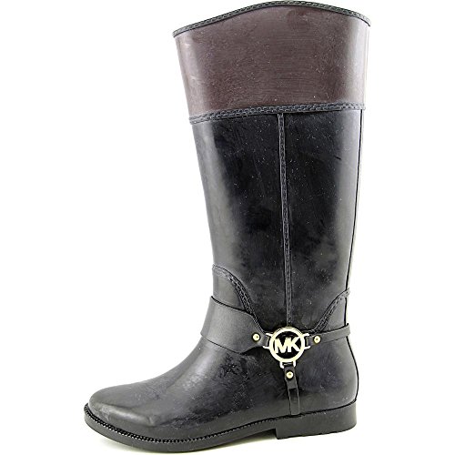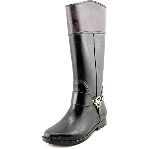 Signature design is constantly en vogue. MICHAEL Michael Kors\' Fulton harness rain boots characteristic a brilliant metal designer logo disk on the side and a shiny rubber vamp.