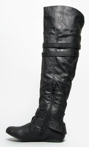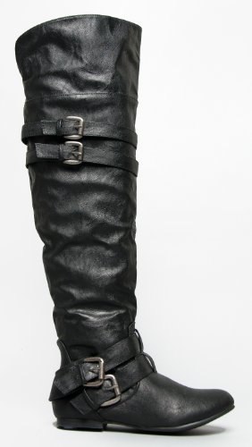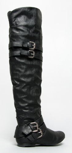 This informal take on the equestrian boot features crinkly leatherette and double strap and buckle specifics to the ankle and cuff.Over-the-knee boots have a wide cuff that can be folded up or down for two distinct appears.