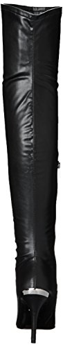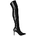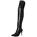 - Tall over-the-knee boot featuring pointed toe, glossy heel insert, and partial inside zipper