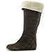 - Over-the-knee boot featuring suede upper with faux-fur lining and lace-up back