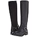 - Tall leather boot with harness strap at ankle and fabric panel at back shaft