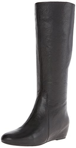 - Tall boot in pebbled finish featuring hidden wedge heel and full-length rear zipper