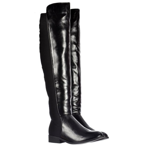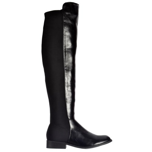 Onlineshoe Women's Wide Calf Stretch Over The Knee Thigh High Flat Black riding boot Uk6 - Eu39 - Us8 - Au7