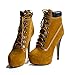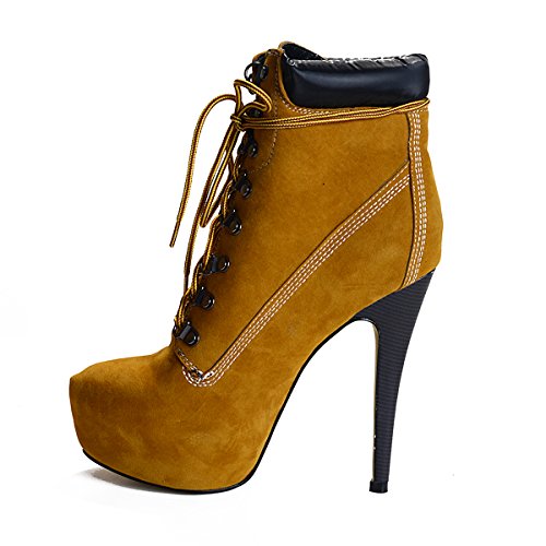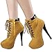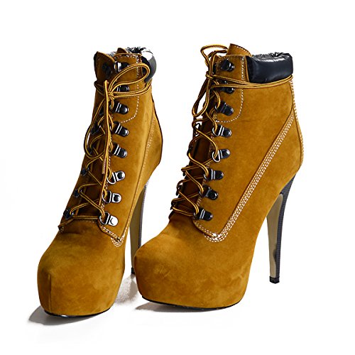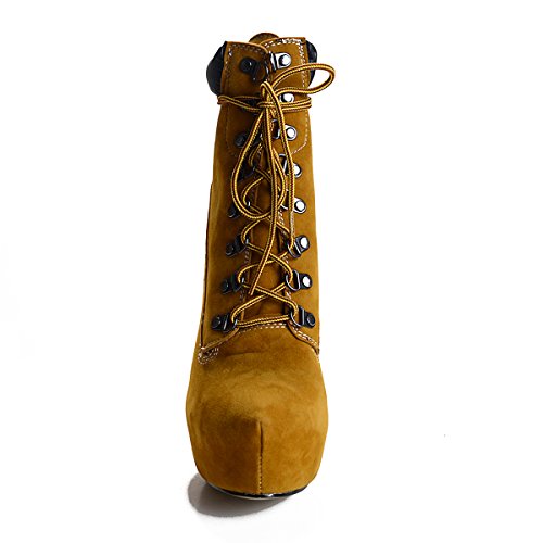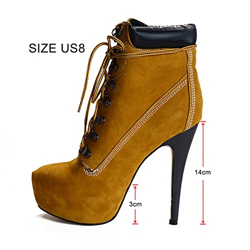 Onlymaker Almond Toe Platform Lace Up High Slim Heel Ankle Boots Brown US11