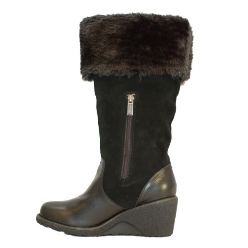 Brave the cold in fashion with these tall mixed media boots from Pajar You are going to be warm in the chic suede shaft and faux fur trim as winter approaches Wedge heel Rounded toe Slipon design with side zip Mixed media upper Faux fur trim Approximate shaft height for size 36: 13\"\" Approximate heel height for size 36: two one/two\"\" Leather/textile/other components Imported