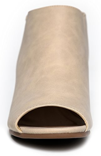 This pair of peep toe booties belong in your new-season closet! Vegan leather ankle boots have a back strap with velcro closure and a low stacked heel that never ever fails to impress.
