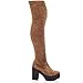 PLATFORM BLOCK HEEL OVER KNEE TALL BOOTS TAN SUEDE STYLE SZ 5