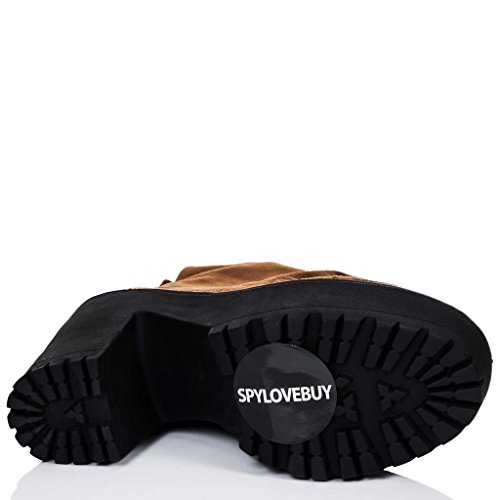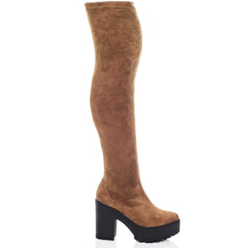 PLATFORM BLOCK HEEL In excess of KNEE TALL BOOTS TAN SUEDE Type SZ 5
