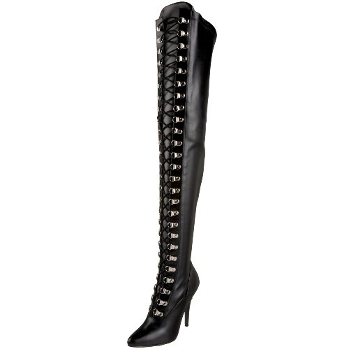 Pleaser Women's Seduce-3024 Thigh-High Boot,Black Stretch PU,8 M US