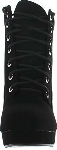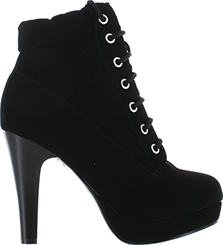 Phase in these military inspired ankle booties and you are sure to flip some heads! Featuring a round toe, lace up front, padded collar, and stitching information. Completed with a chunky heel, a lightly padded insole and a .75\" platform for comfort dress in.