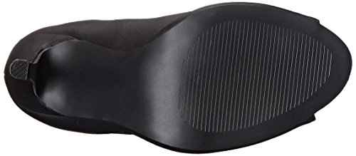 - Peep-toe faux-leather boot featuring covered heel and zipper entry