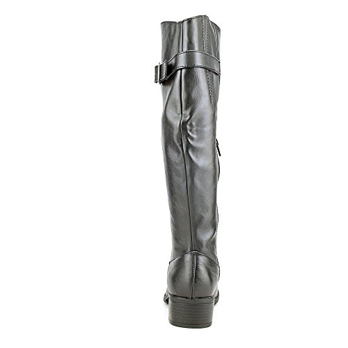 A traditional search will get a chic update in the Idaho boots from Rampage. Faux leather upper in a casual knee-high boot fashion with a round toe. Decorative shaft strap with metal buckle closure. Inner side zip with hidden elastic gore. one.5\" Heel. 14.five\" Shaft depth. 14.five\" Circumference at top. Fashion # RY4030.