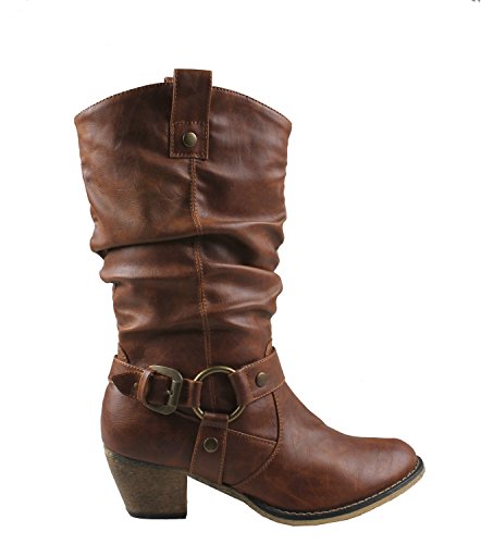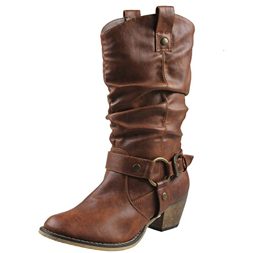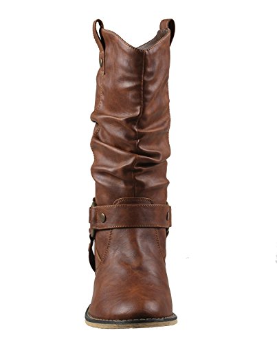 Refresh Women Wild-02 Western Style Cowboy Boots,Tan,8.5