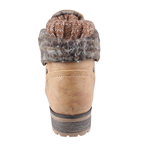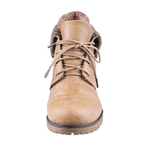 REFRESH WYNNE-01 Women's combat style lace up ankle bootie,7.5 B(M) US,Tan