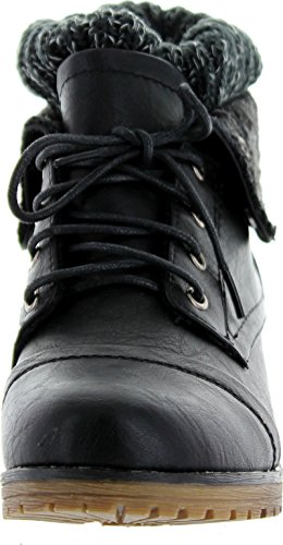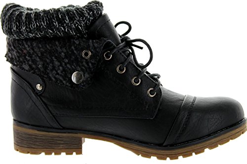 REFRESH WYNNE-01 Women's combat style lace up ankle bootie,8 B(M) US,Black