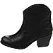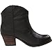 - Ankle-length western boot with stacked heel and cushioned footbed