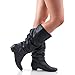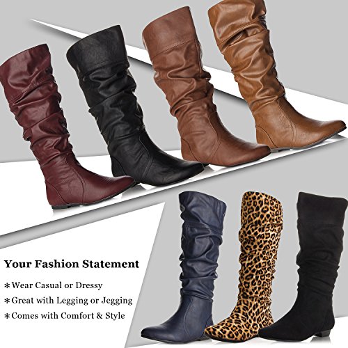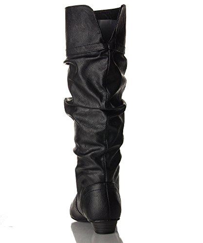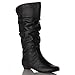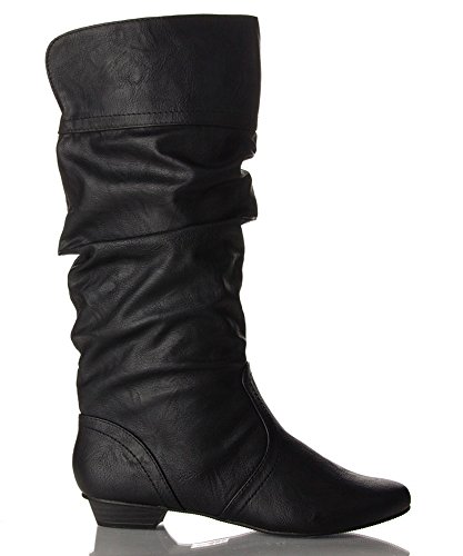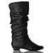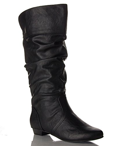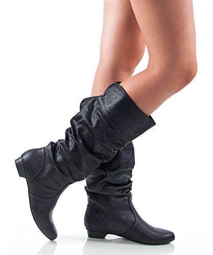 ROF Women's Basic Slouchy Knee High Flat Boot BLACK PU (8.5)