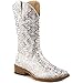 Roper Women's Bling Lace Glitter Faux Leather Cowgirl Boot Square Toe White US