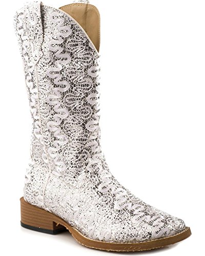 Roper Women's Bling Lace Glitter Faux Leather Cowgirl Boot Square Toe White US