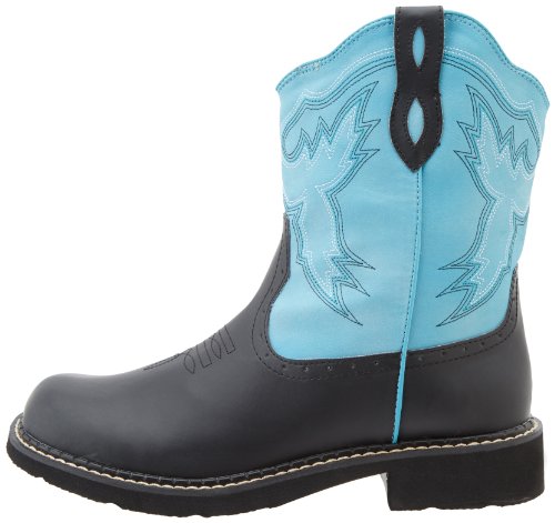 Roper produces trendy cowgirl boots and reasonably priced prices for today\'s cowgirls This women\'s cowgirl boot functions a faux black leather foot beneath a vibrant blue, fancy stitched 8\" faux leather shaft. Faux leather lining. Straightforward-on pull straps and classic round toe. Imported.