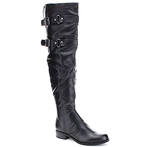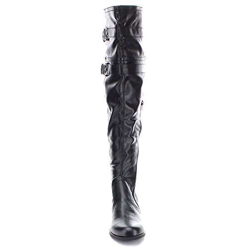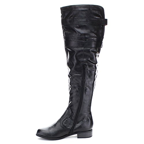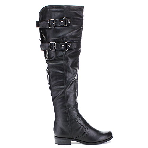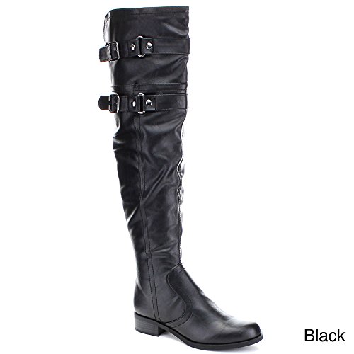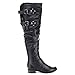 Soda Ride Women's Faux Leather Two Buckle Accent Riding Boots, Color:BLACK, Size:7.5