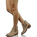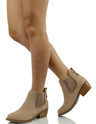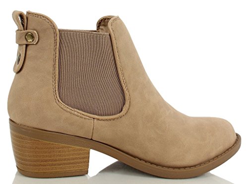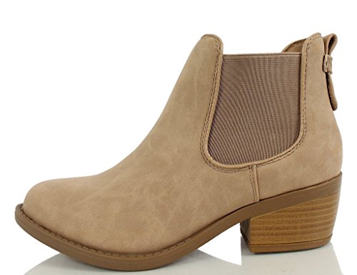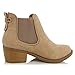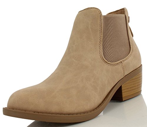 Soda Women's Chelsea Faux Leather Elastic Side Panel Ankle Boots Dress, Beige, 9 M US