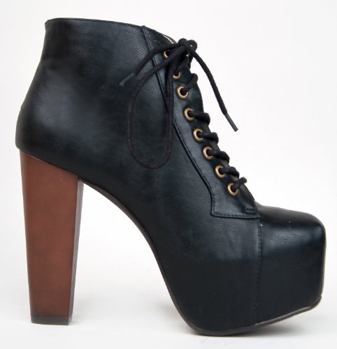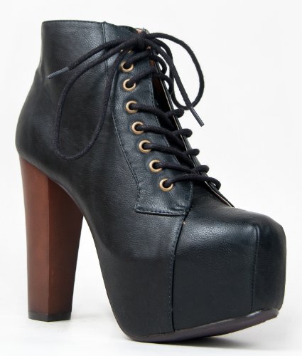 Speed Limit 98 ROSA Designer Inspired Lita Style Chunky High Heel Lace Up Ankle Boot Bootie 5.5 B(M) US Black Pu