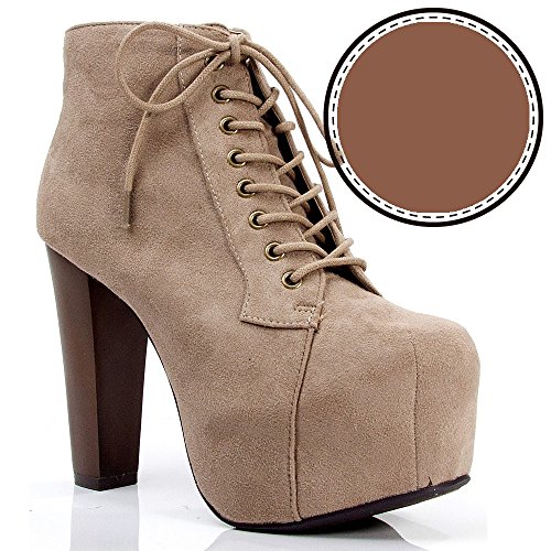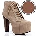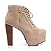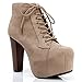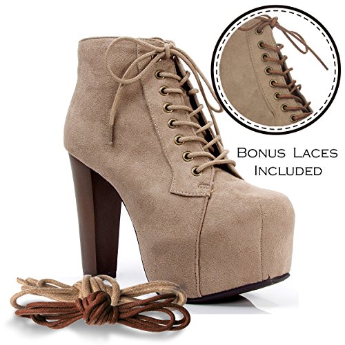 Speed Limit 98 ROSA Designer Inspired Lita Style Chunky High Heel Lace Up Ankle Boot Bootie TAUPE SUEDE /CAMEL LACE (8.5)