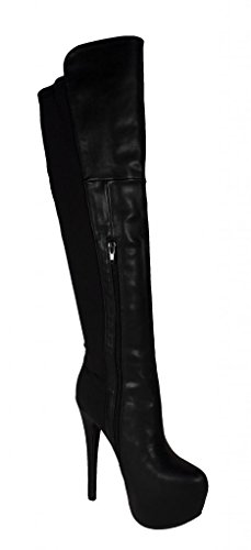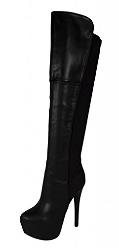 Speed Limit 98 Women's Abby Over The Knee Platform Heel Boots Back Elastic Fabric, black leatherette, 7.5 M US