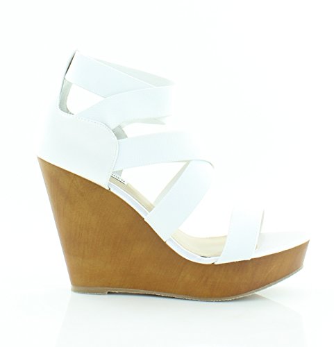 Steve Madden Women's Val Wedge Sandal,White,8.5 M US