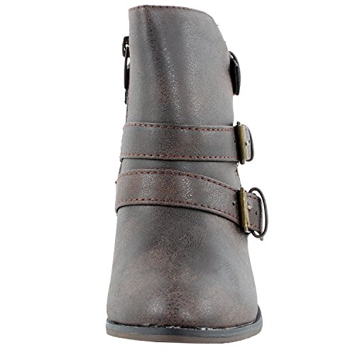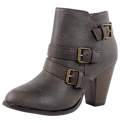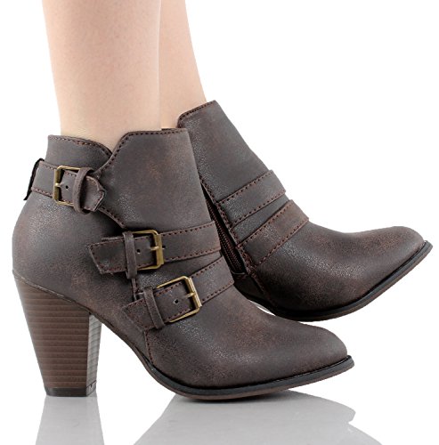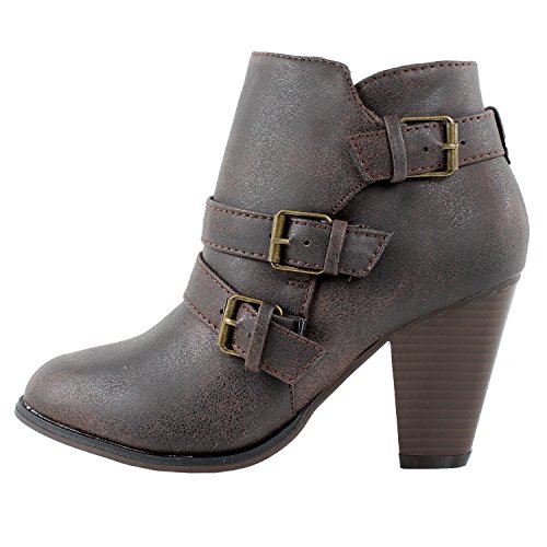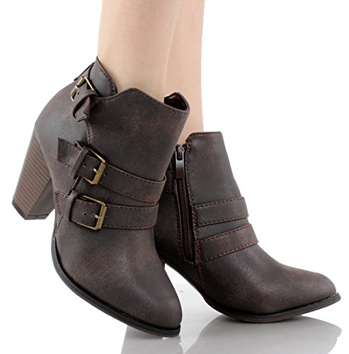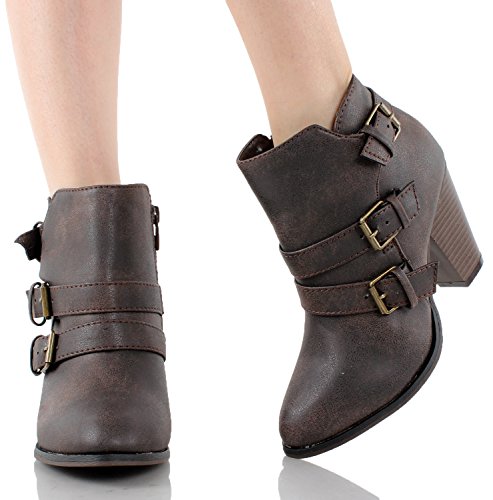 Titan Mall Forever Camila-64 Womens Fashion Chunky Heel Buckled Strap Ankle Booties (7 B(M) US, Brown)